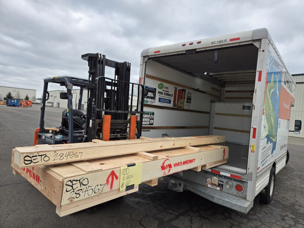 I am used to driving my Subaru BRZ sports car. I am not used to driving a box truck with no rear visibility. The trip was a little nerve racking, but I did manage to get to Aurora and back, with both crates of parts unharmed and with really minimal trouble. I also got a factory tour and a ride in N410RV.