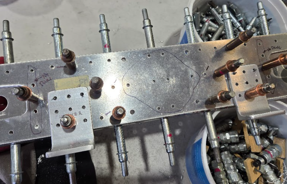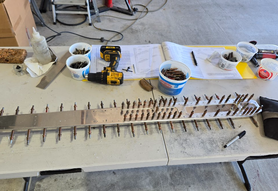 Mark and Ephraim started match drilling the stringers on the opposite side of the TC. Eventually, I finished my side and joined them on theirs.