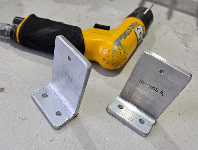 Ephraim was off doing some other kit components, but it wasn’t until I finished up with my Hstab parts did I realize he had just fabricated the Hstab attach brackets! He finished one and then only partially the other. I’ve learned that when Ephraim makes something look like it was effortless to produce, I should be fearful for the effort that awaits me to duplicate what he just did. Finishing the other bracket was a bit more of a challenge, and I will admit I had to pull a lifeline for Ephraim’s help. In the end, we were left with two nice looking matching mirror image brackets.