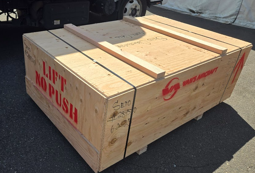 Fast forward to June, the finish kit came ready. I repeated the routine from the empennage kit, though, this time with a UHaul pickup and without the tourist activities at Vans. Arriving back at my hangar, I opened the crate still on the truck and unloaded it part by part. When I was done, I just pushed the empty crate right off the tailgate. Done!