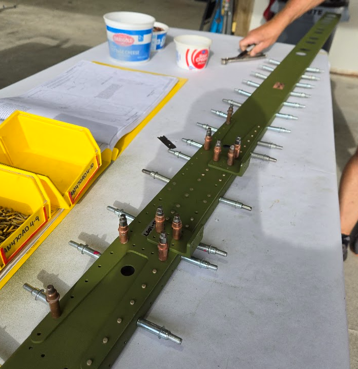 Oh yesRiveting the spar doubler to the sparOne of my first few rivets on the airplaneI drove all these!Assembled, torqued, torque sealed