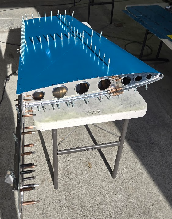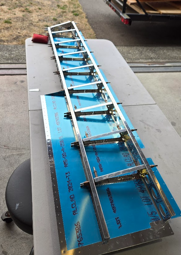 The rest of the day, we followed the assembly instructions in order. We ended the day with a rear spar with doubler and endcaps cleco’d in place.