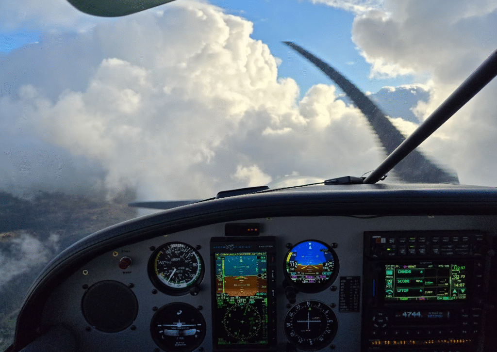Bill and I had originally planned to make the trip in his Carbon Cub, but over lunch we realized the trip in the Cub would probably be too long of a slog for either of us to remain enthusiastic, so we opted to switch up to taking Bill’s DA62. With long range, a quiet/comfortable cabin, oxygen, WX radar, TKS FIKI, and the performance to easily climb up high, the DA62 is about the best possible GA XC airplane until you get into the turboprop category.